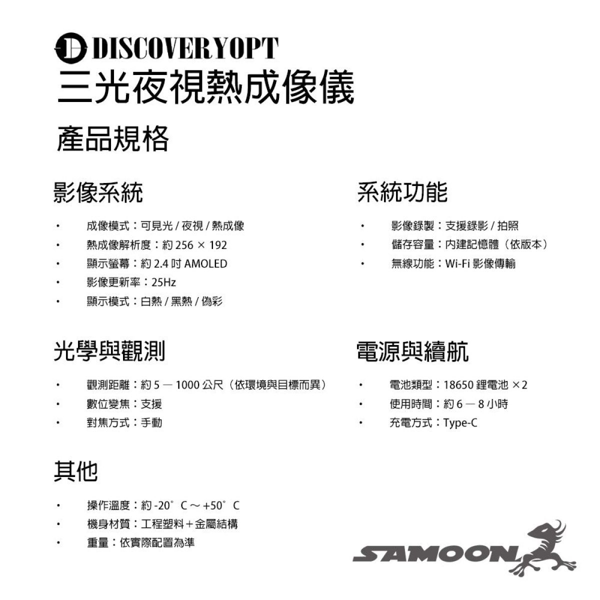 成像模式:可見光 / 夜視 / 熱成像